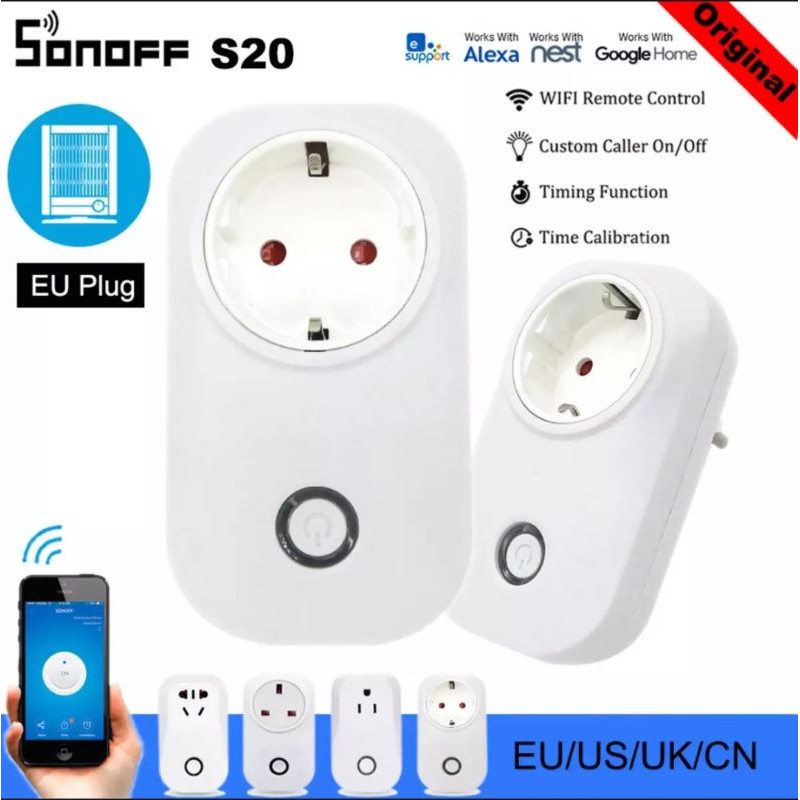 Thiết Bị Điện Gia Dụng > Mạch điện & Phụ tùng > Ổ cắm điện & Dây nối || Ổ cắm Wifi SONOFF S20 hẹn giờ, bật tắt từ xa qua App EWELINKCòn hàng