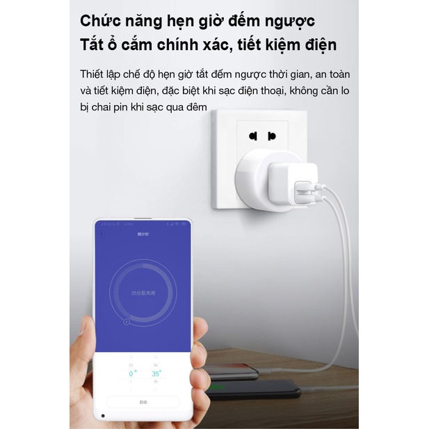 >Bên cạnh đó ổ cắm Wifi Gosund còn có chức năng đếm ngược thời gian khá thú vị, giúp bạn dễ dàng kiểm soát thời gian sạc hoặc sử dụng điện, vừa tiết kiệm năng lượng lại đảm bảo an toàn cho thiết bị. Ngoài ra ổ cắm cũng có khả năng đồng bộ với các thiết bị khác trong hệ sinh thái Xiaomi để tạo thành hệ thống smarthome. Ổ cắm thông minh CP1 còn có khả năng nhận lệnh điều khiển từ xa thông qua loa Xiaomi.