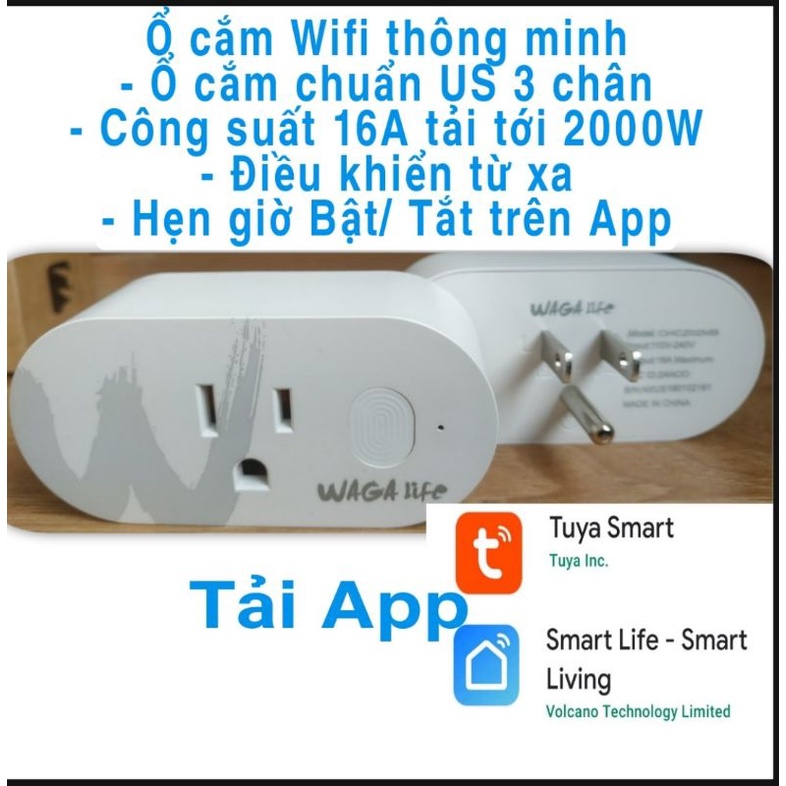 Ổ CẮM WIFI thông minh. Kết nối ứng dụng Tuya/ Smart life, Google Home, Amazon Alexa