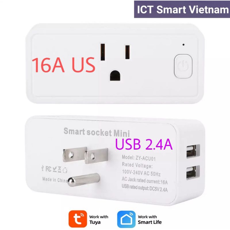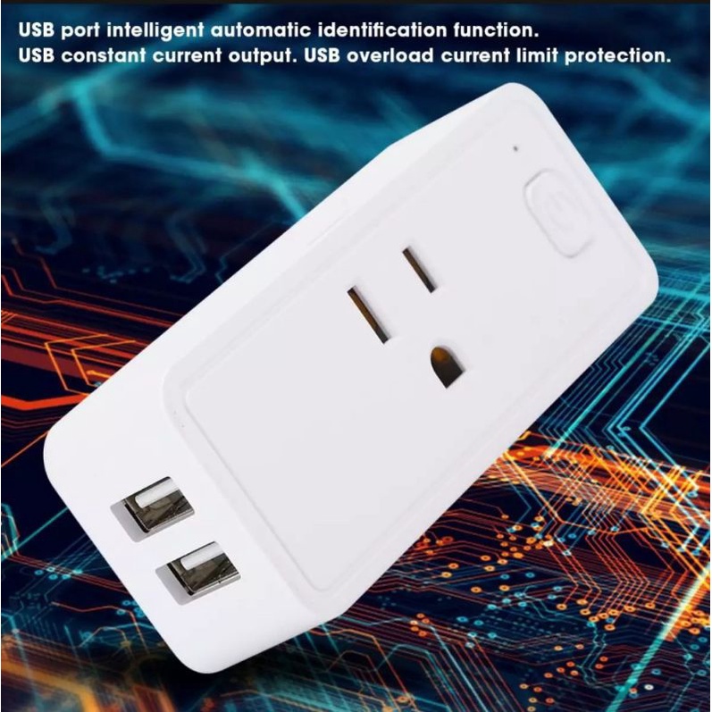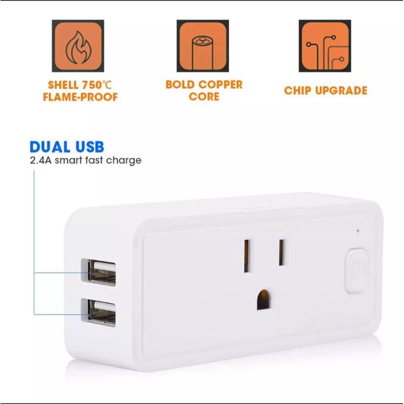 Thiết Bị Điện Gia Dụng > Mạch điện & Phụ tùng > Ổ cắm điện & Dây nối || Ổ cắm Wifi Tuya 16A US với 2 cổng USB 5V 2.4ACòn hàng