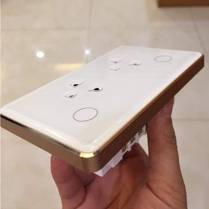 Ổ Cắm Điện Thông Minh Wifi Viền Vàng Tuya Âm Tường Chữ Nhật Điều Khiển Từ Xa 10A Hẹn Giờ Điều Khiển Từ Xa