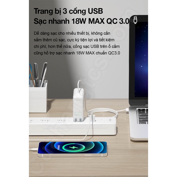 ☑️ Ổ cắm thông minh xiaomi Với 3 cổng USB Cổng QC3.0 sạc nhanh 18W, dễ dàng truy cập nhiều thiết bị, không lo lắng về việc không có đầu sạc USB