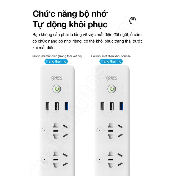 ☑️ Đặc biệt ổ cắm điện thông minh Xiaomi Gosund còn có bộ nhớ lưu trữ khi mất điện đột ngột thì bộ nhớ sẽ lưu trữ trạng thái cài đặt trước khi mất điện không phải cài đặt lại từ đầu như các loại ổ cắm thông minh thông thường
