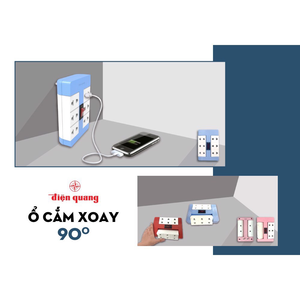 Giới thiệu Ổ Cắm Xoay 90° Điện Quang ĐQ ESK RT 6WR 6 Lỗ, Màu Đỏ Trắng