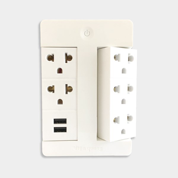 - Có 5 lỗ cắm 3 chấu trong đó có 2 lỗ tích hợp Wifi, 2 cổng sạc USB – 2A.
