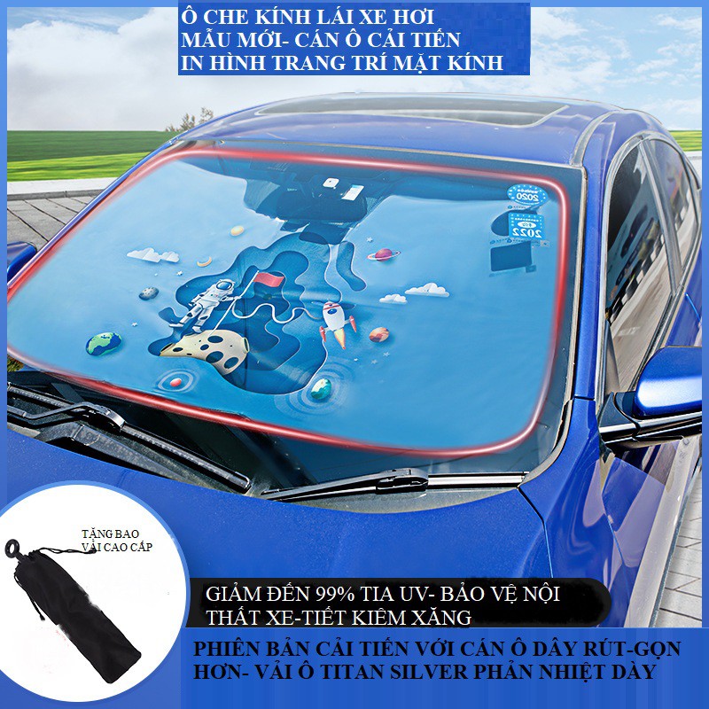 Ô che kính lái xe hơi(BẢN NÂNG CẤP) dù che nắng kính lái mặt ô in ảnh kỹ thuật số - nan nhôm siêu nhẹ