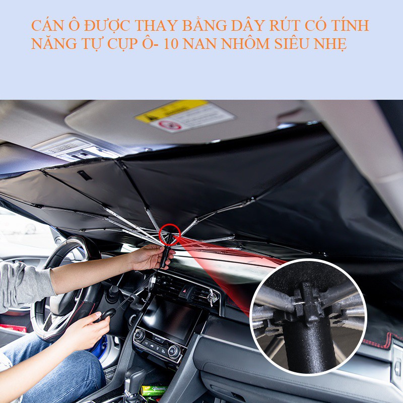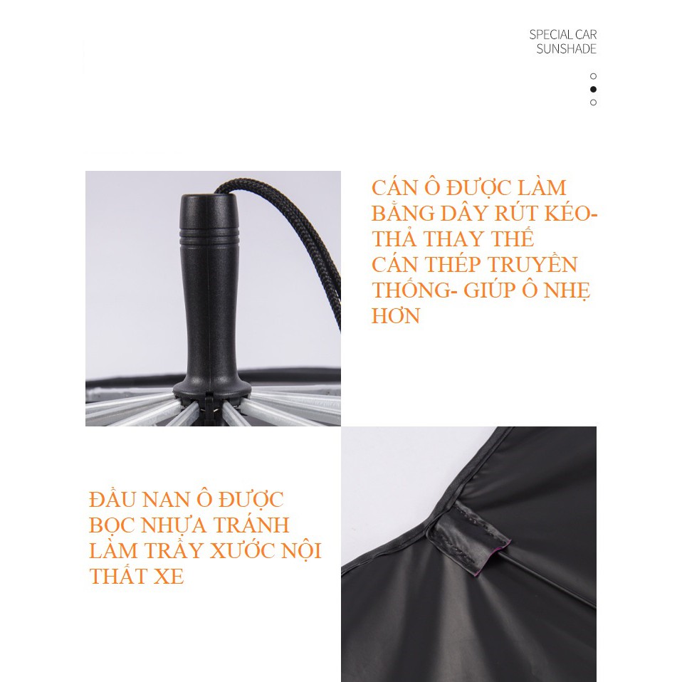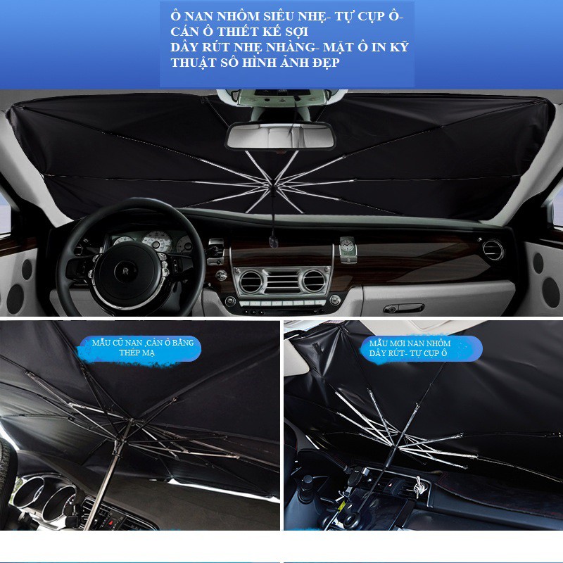 Tính năng: Ô che kính trước ô tô- mẫu mới thế hệ thứ 2 chất vải và nan ô được cải tiến- phản nhiệt tốt hơn- trọng lượng nhẹ hơn mẫu cũ cán thép 100gam