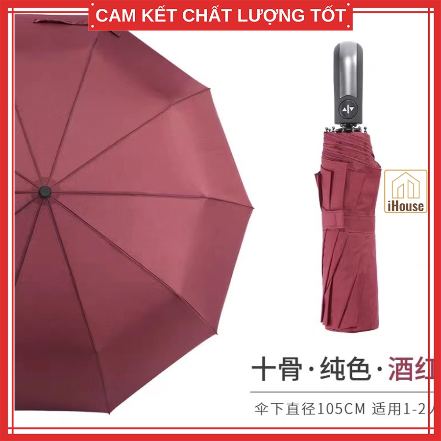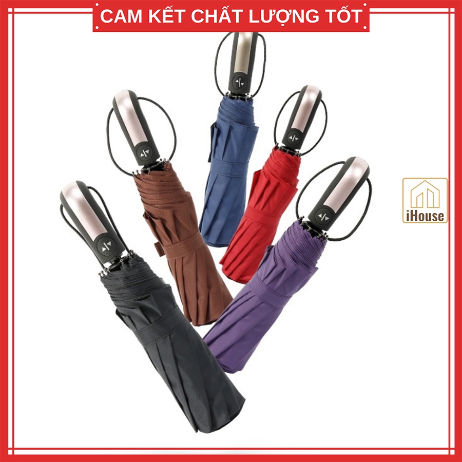Ô che mưa nắng đóng mở bấm tự động, Ô dù che mưa nắng thời trang gấp nhỏ gọn có dây đeo iHouse