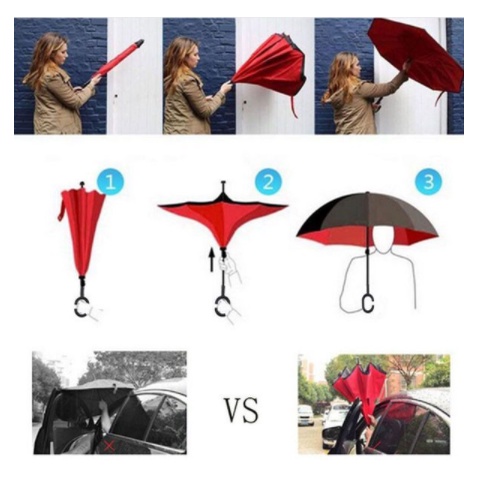 🍀 Ô dù mở ngược 2 lớp giữ nước, không bao giờ để ướt quần áo hoặc đồ dùng khi trên xe.