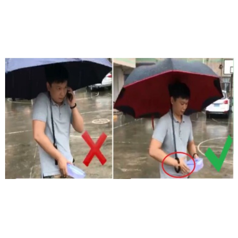 ❸ Tránh va chạm ở nơi đông người: Ở nơi đông người, khi bạn mở loại dù truyền thống ra, cánh dù có thể đập vào những người xung quanh. Mạnh mẽ và vững chắc đối mặt với gió tốc: Với cấu tạo hai nan hoa, ô mở ngược Kazbrella cực kỳ cứng chắc. Ngay cả trong trường hợp dù bị gió thổi tốc ngược, chỉ cần nhấn nút khóa/mở, ô gấp ngược Kazbrella sẽ trở về hình dạng ban đầu.