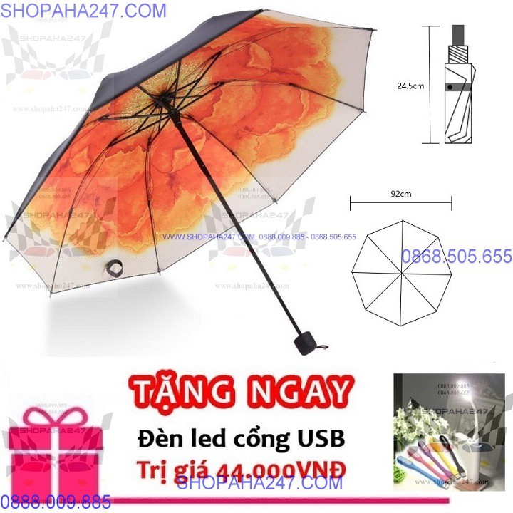 Giới thiệu ô che mưa mưa nắng chống tia uv hoa hải đường tặng đèn led usb