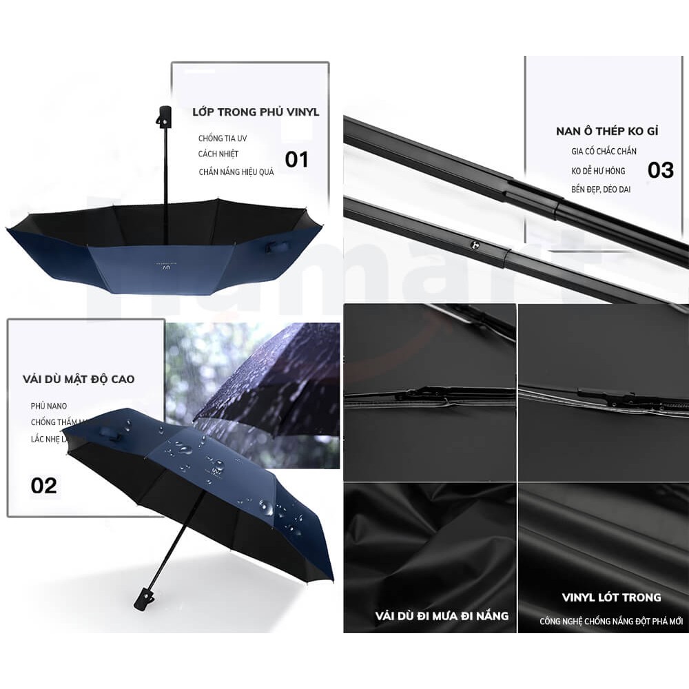 Giới thiệu Ô Che Nắng Chống Tia UV Hamart Ô Dù Tự Động Mini Dù Che Mưa Phủ Vinyl Chống Thấm Cao Cấp