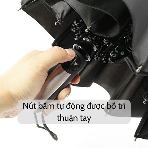 + Nút bấm tự động: Được bố trí thuận tiện ở tay cầm. Khi bấm mở, dù có lực bấm tốt, tán dù bung nhanh khỏe, lúc thu gọn trơn, mượt, không bị kéo rít, không bị nặng tay.