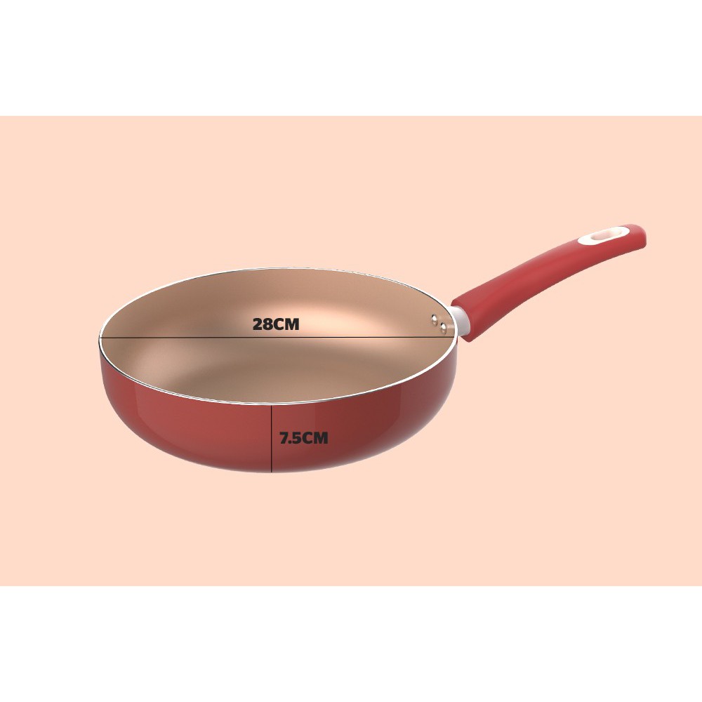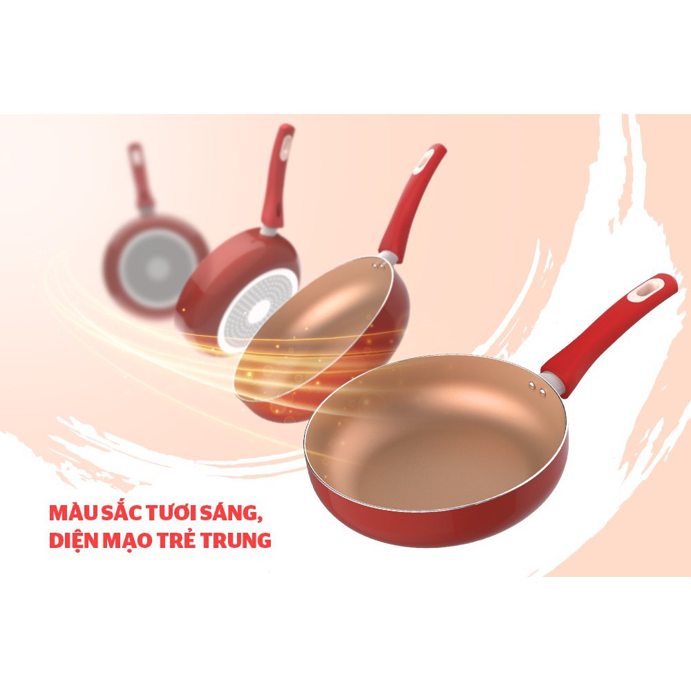 • Sơn màu chịu nhiệt bên ngoài: Vỏ ngoài chảo được sơn một lớp chịu nhiệt màu đỏ gạch bắt mắt, chống bám bụi, hạn chế trầy xước, dễ dàng vệ sinh.