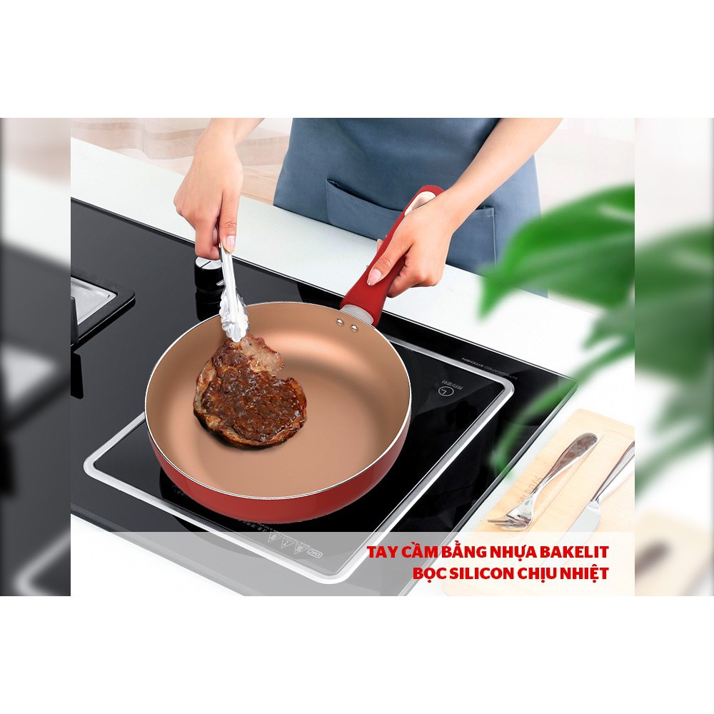 • Lớp chống dính Whitford bền bỉ: Lòng chảo được phủ chống dính Whitford (USA) cho độ bền cao, không dễ bong tróc như các loại chảo khác.