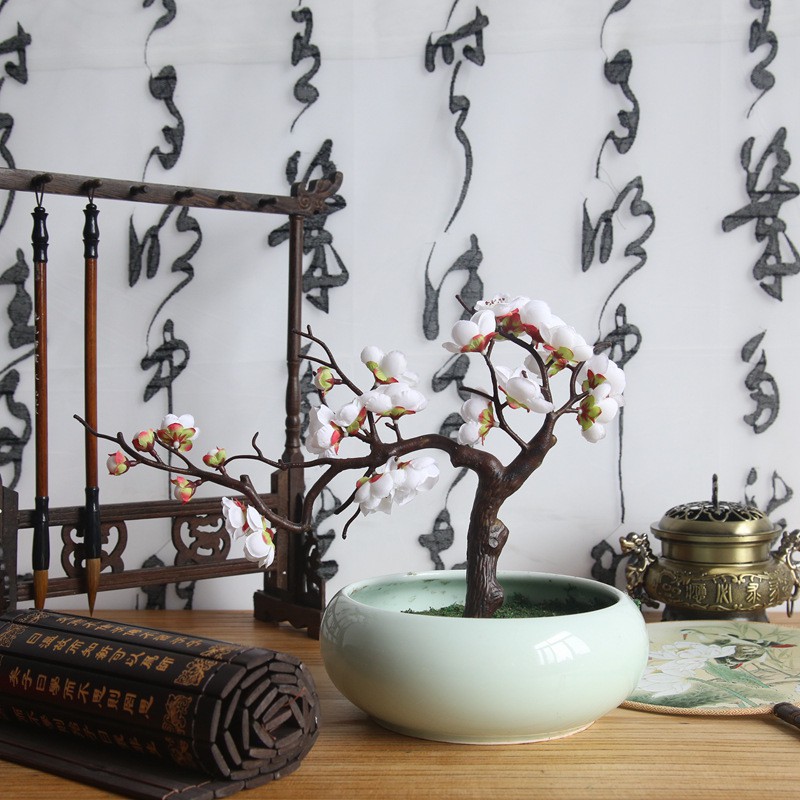 Cây đào cổ dáng bonsai (có phân loại kèm chậu) trang trí nghệ thuật 33cm - Hoa giả để bàn
