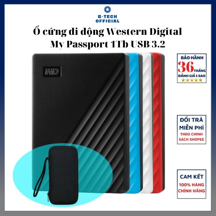 Máy tính & Laptop > Thiết Bị Lưu Trữ > Ổ Cứng Di Động || [Mã 273ELHA100K0 hoàn 7% đơn 500K] Ổ cứng di động Western Digital My Passport 1Tb USB3.2 - Hàng chính hãngCòn hàng