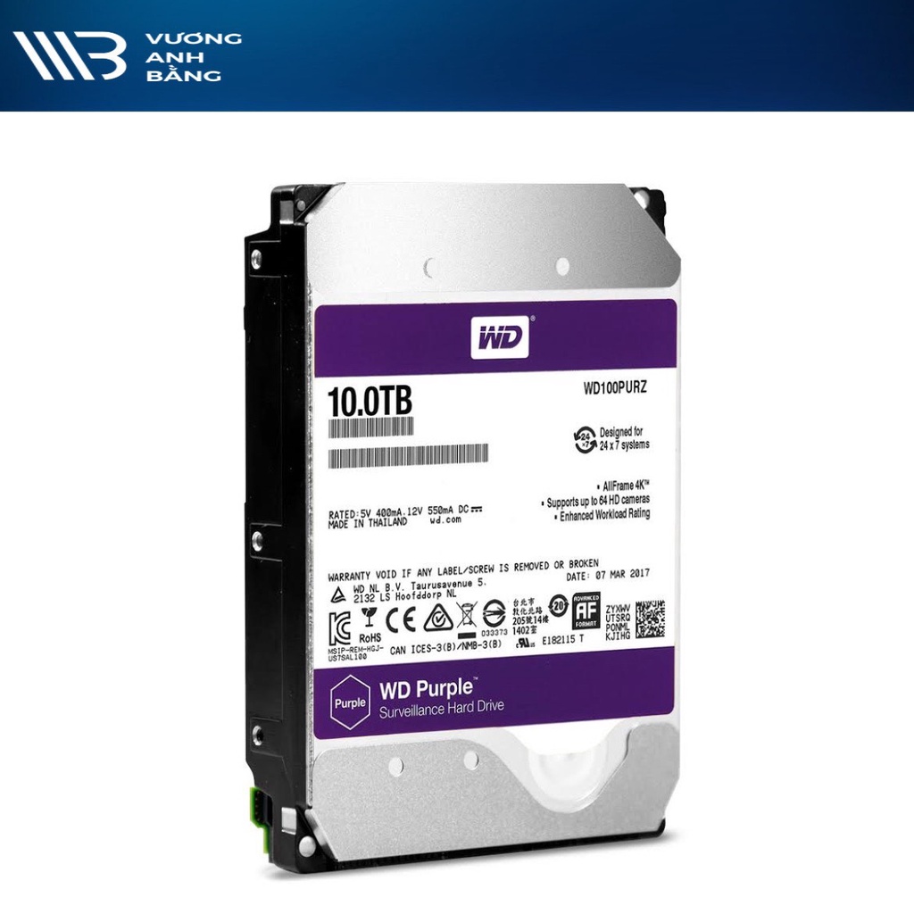 Ổ Cứng HDD WD Purple 10TB CHUYÊN DÙNG CHO CAMERA. PC,...Dung lượng lưu trữ lớn