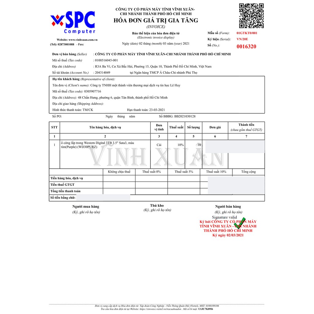 - Ổ cứng chuyên dụng tem tím cho Camera giám sát.- Dung lượng: 3TB.