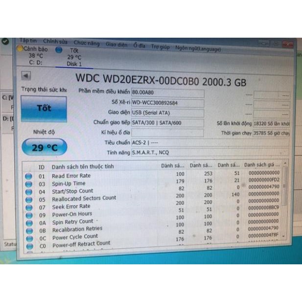 Ổ cứng 2tb sức khỏe 100% đã test bằng 3 phần mềm ok