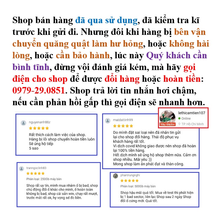 LƯU Ý: Một số shop giả mạo, dùng phần mềm sao chép sản phẩm tự động. Quý khách xin kiểm tra và tìm đúng tài khoản lethicamtien107 (Linh kiện máy tính BCC) để đặt hàng.Nếu nhận hàng mà không hài lòng, không sử dụng được hoặc cần bảo hành thì Quý khách gọi hotline 0979-290.851 để được hỗ trợ kĩ thuật, trường hợp hàng lỗi (kể cả do vận chuyển) shop sẽ hoàn tiền 100%.