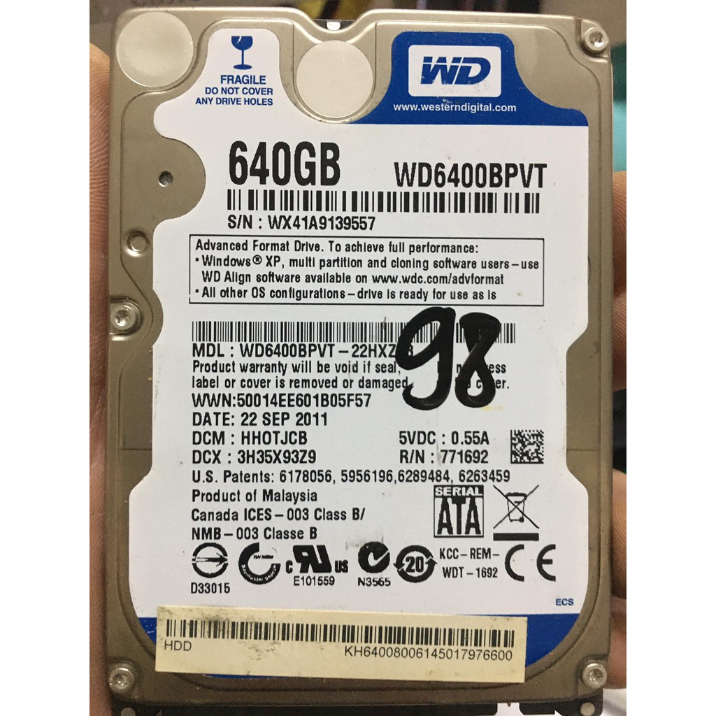 Ổ cứng 640Gb, HDD 640Gb laptop sk 90-99%Loại ổ HDD