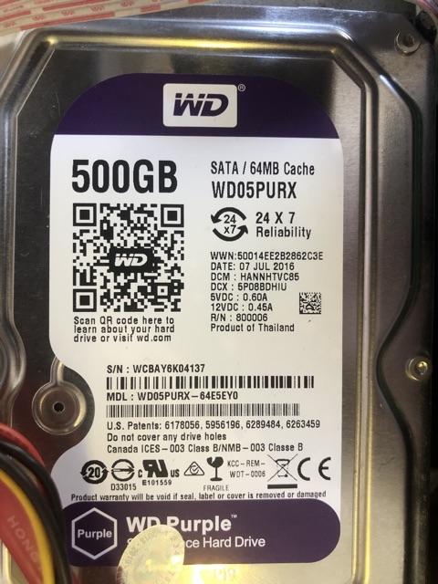 Ổ cứng tím chuyên dùng đầu ghi hình camera Western 500GB---hãng suất sứ : product of thailand