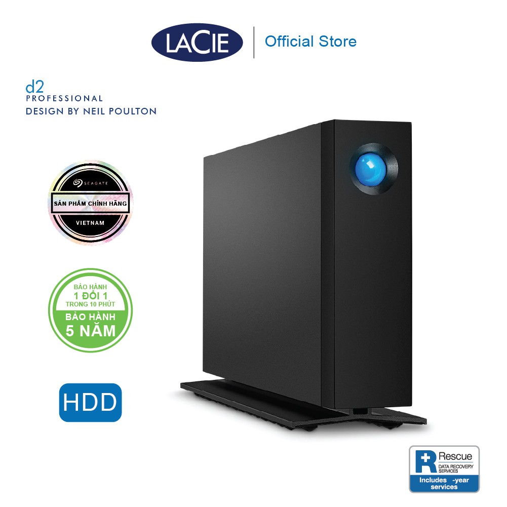 Ổ cứng LaCie d2 Professional được bảo hành 5 năm, 1 đổi 1 trong vòng 10 phút, tại hệ thống Trung tâm bảo hành SeaCare Center: