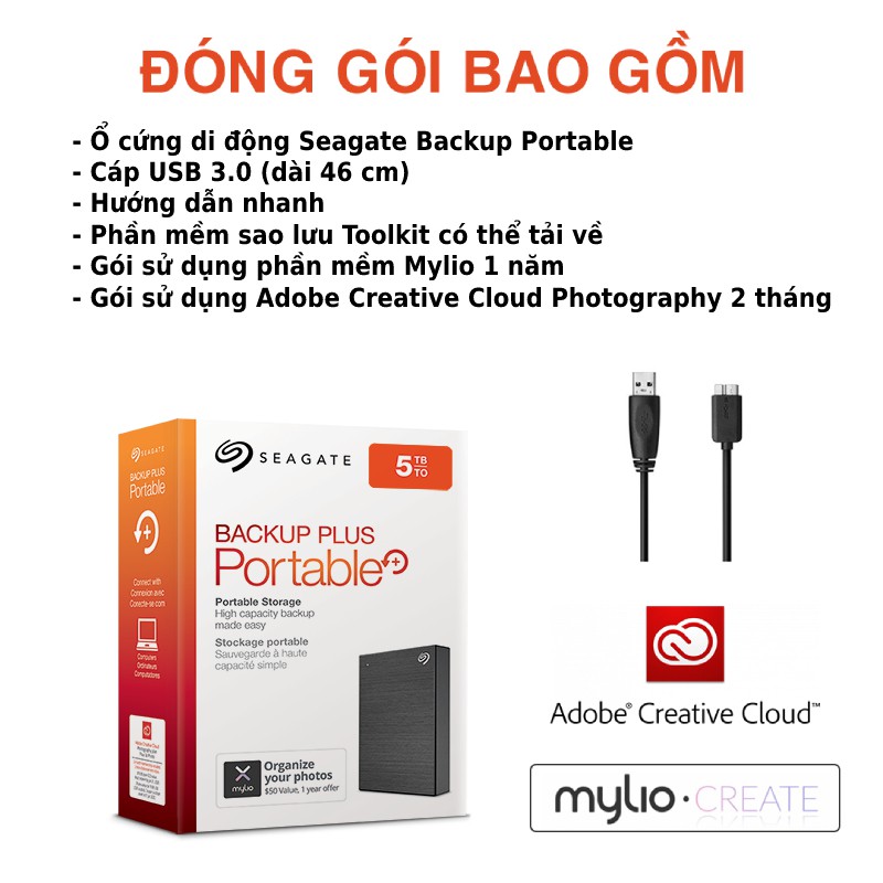 [Mã ELMALL10 giảm 10% đơn 500K] Ổ Cứng Di Động HDD Seagate Backup Plus Portable 5TB_USB 3.0 + Phục Hồi Dữ Liệu Rescue