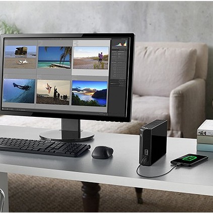 Dòng ổ cứng Backup Plus được trang bị 2 cổng USB 3.0 tích hợp ngay ở mặt trước, nên bạn có thể kết nối và sạc điện thoại, tablet hoặc máy ảnh của bạn ngay cả khi hệ thống đang tắt hay ở chế độ chờ.