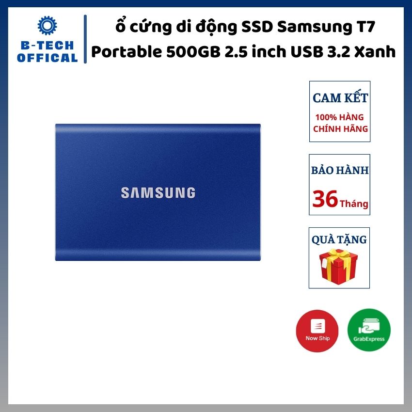 Máy tính & Laptop > Thiết Bị Lưu Trữ > Ổ Cứng SSD || Ổ Cứng Di Động SSD Samsung T7 Portable 500GB 2.5 inch USB 3.2 Xanh (Đọc 1050MB/s - Ghi 1000MB/s)-(MU-PC500H/WW)Còn hàng