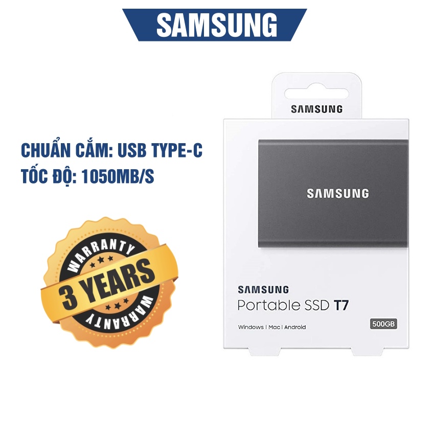 Máy tính & Laptop > Thiết Bị Lưu Trữ > Ổ Cứng SSD || Ổ cứng di động SSD Samsung T7 500GB Màu ĐenCòn hàng