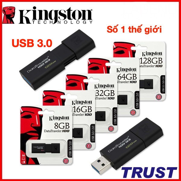 USB Kingston 3.0 16G, 32G, 64GB, 128GB – USB 3.0 sử dụng công nghệ USB 3.0 giúp truyền tải dữ liệu giữa máy tính và các thiết bị một cách nhanh chóng và an toàn nhất. Dùng lượng lưu trữ 16G, 32G, 64GB, 128GB giúp bạn thoải mái trong việc lưu trữ và chia sẻ văn bản, âm nhạc, videos.