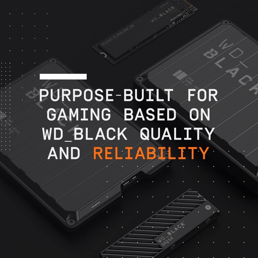 WD_BLACK ™ đang phá vỡ khuôn mẫu khi nói đến hiệu suất và mở rộng lưu trữ cao cấp. Được xây dựng có mục đích cho các game thủ, WD_BLACK ™ P10 Game Drive mang đến cho máy chơi game hoặc PC của bạn khả năng tăng cường đáng tin cậy, hiệu suất đáng tin cậy và dung lượng cần thiết, do đó bạn sẽ bớt lo lắng về phần cứng của mình hơn và giành được nhiều thời gian hơn.
