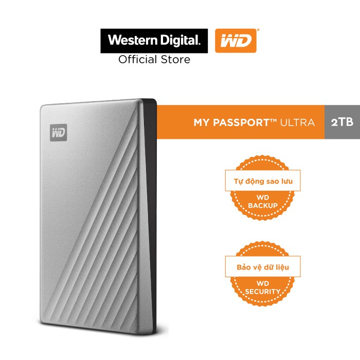 Máy tính & Laptop > Thiết Bị Lưu Trữ > Ổ Cứng Di Động || [Mã ELMALL1TR giảm 5% đơn 3TR] Ổ Cứng Di Động WD My Passport Ultra Silver -2TB ( 2.5" USB 3.0 )-Còn hàng