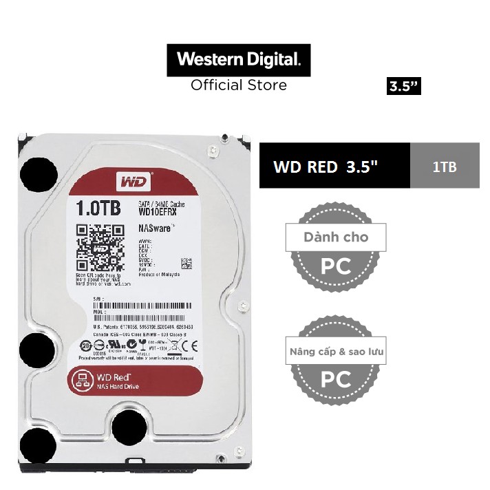 Máy tính & Laptop > Thiết Bị Lưu Trữ > Ổ Cứng Di Động || Ổ cứng gắn trong desktop Western Digital WD Red 1TB, 3.5, SATA 3 - WD10EFRXCòn hàng