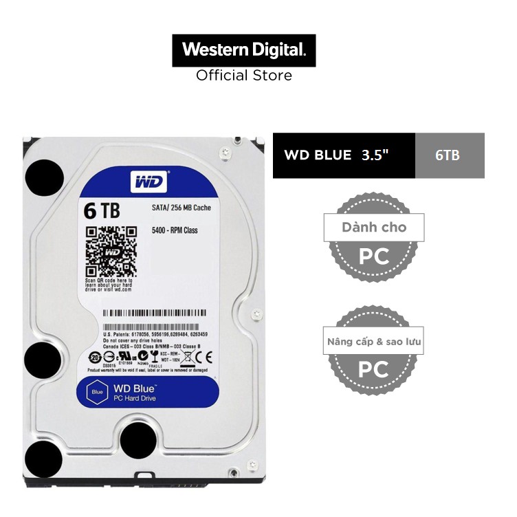 Máy tính & Laptop > Thiết Bị Lưu Trữ > Ổ Cứng Di Động || [Mã ELMALL1TR giảm 5% đơn 3TR] Ổ cứng gắn trong desktop Western Digital WD Blue 6TB, 3.5, sata 3 - WD60EZAZCòn hàng