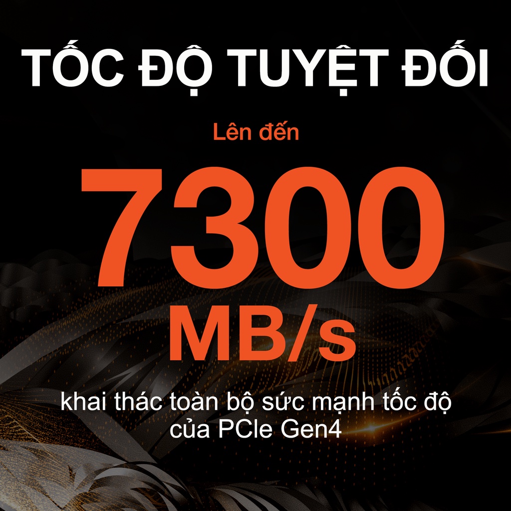 - Giao tiếp PCIe Gen4 ×4 NVMe 1.4, Tốc độ Đọc/ Ghi đạt 7,300Mb/s & 6,000Mb/s nhanh gấp 2 lần so với PCIe Gen3 NVMe™ SSDs và gấp 12 lần so với SATA SSDs