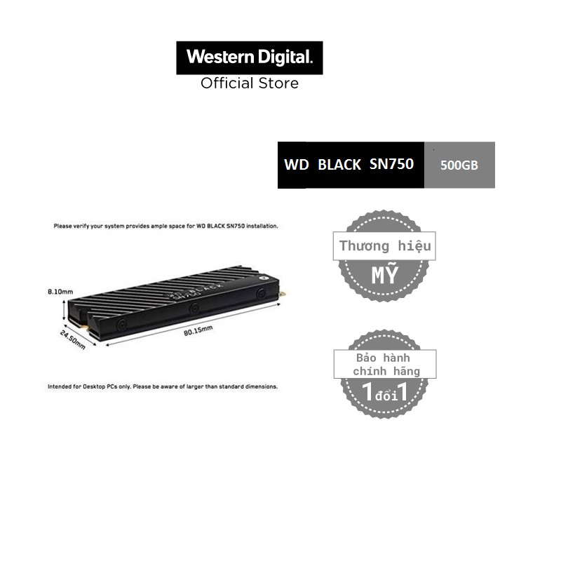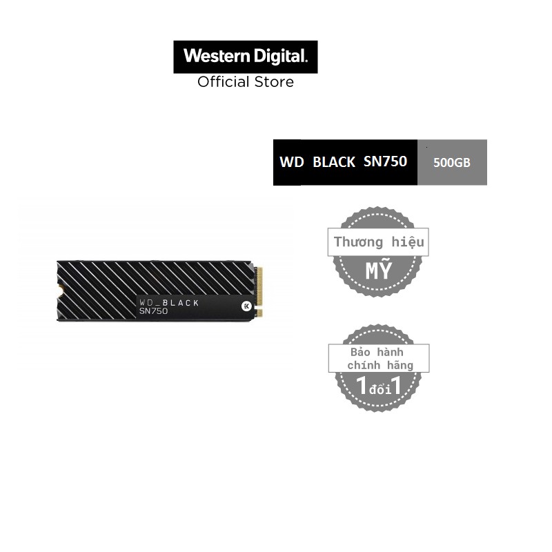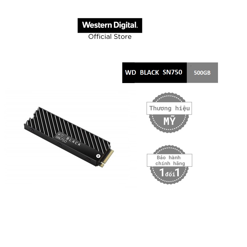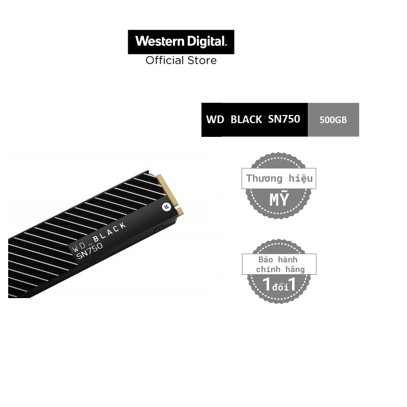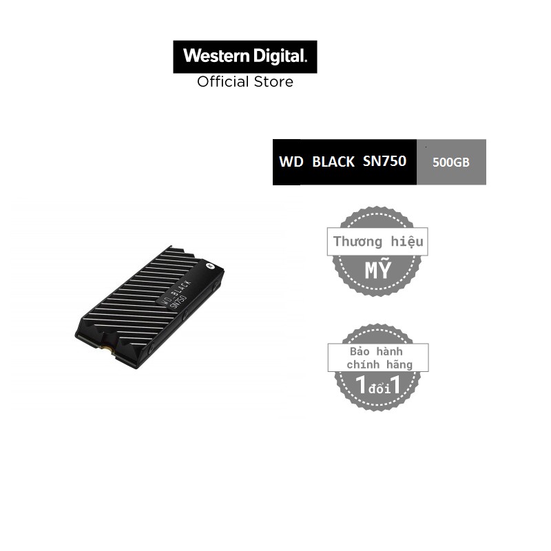 Máy tính & Laptop > Thiết Bị Lưu Trữ > Ổ Cứng Di Động || Ổ cứng gắn trong WD Black SN750 500GB internal gaming SSD with Heatsink - Gen3 PCIe NVMe (WDS500G3XHC)Còn hàng