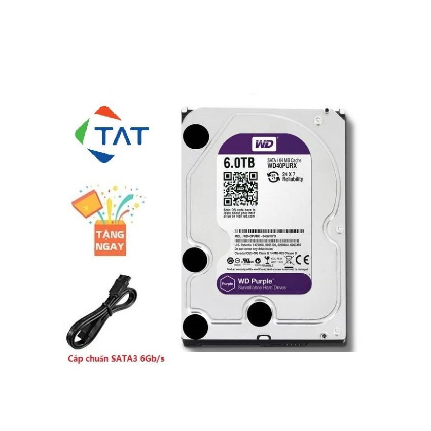 Máy tính & Laptop > Thiết Bị Lưu Trữ > Ổ Cứng Di Động || Ổ cứng gắn trong Western Purple 6TB 3.5 inchs SATA 3 64MB Cache /5400RPM (màu tím) (WD62PURZ)Còn hàng