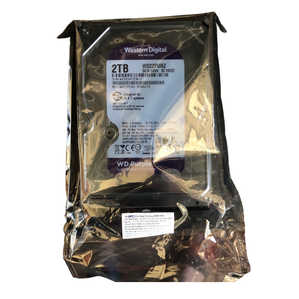- Ổ cứng gắn trong WDPurple đáp ứng nhu cầu lưu trữ ngày càng cao cho hệ thống camera theo dõi giám sát HDD 1T