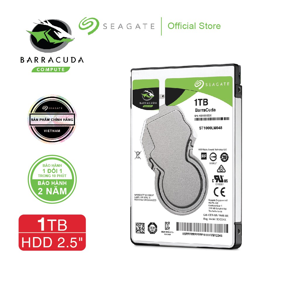 Ổ gắn trong Seagate BarraCuda HDD được bảo hành 2 năm, 1 đổi 1 trong vòng 10 phút, tại hệ thống Trung tâm bảo hành SeaCare Center: