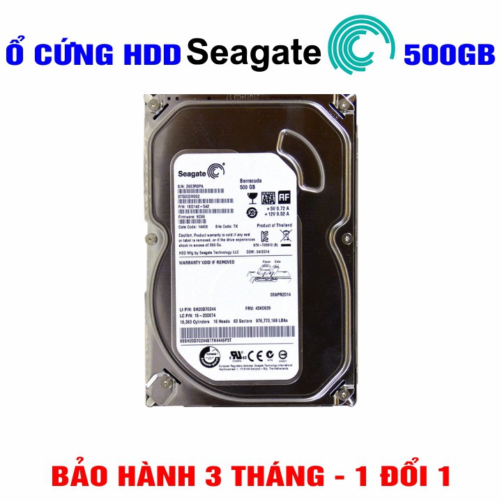 Giới thiệu Ổ cứng HDD 3.5" Seagate 500GB – Chính Hãng – Mới 99% Tháo máy đồng bộ – Bảo hành 3 tháng