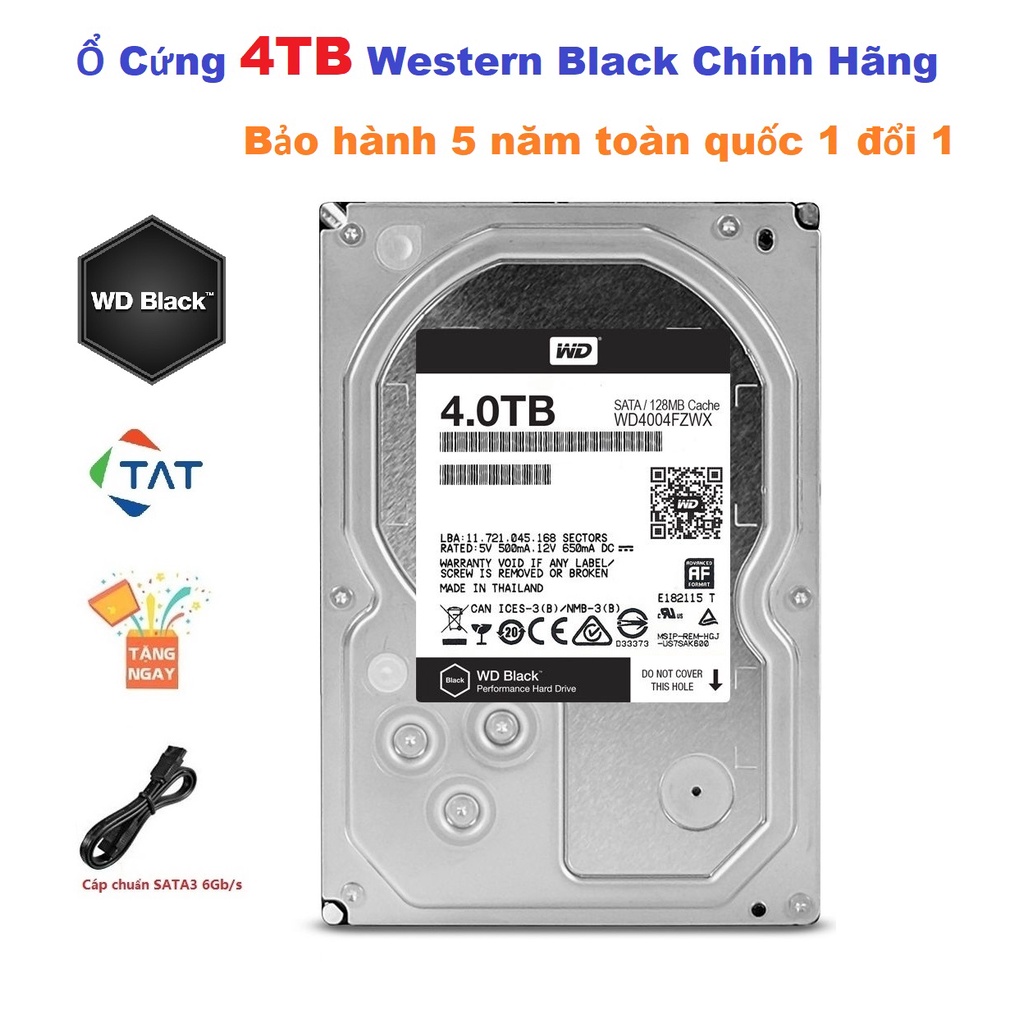 Ổ Cứng 4TB Wester Black Dùng Cho Tất Cả Các Thiết Bị Lưu Trữ Chuyên Dụng.Tặng ngay cáp chuẩn SATA3 6.0Gbs chính hãng trị giá 50k (dùng cáp chuẩn quyết định 60% tốc độ của ổ)