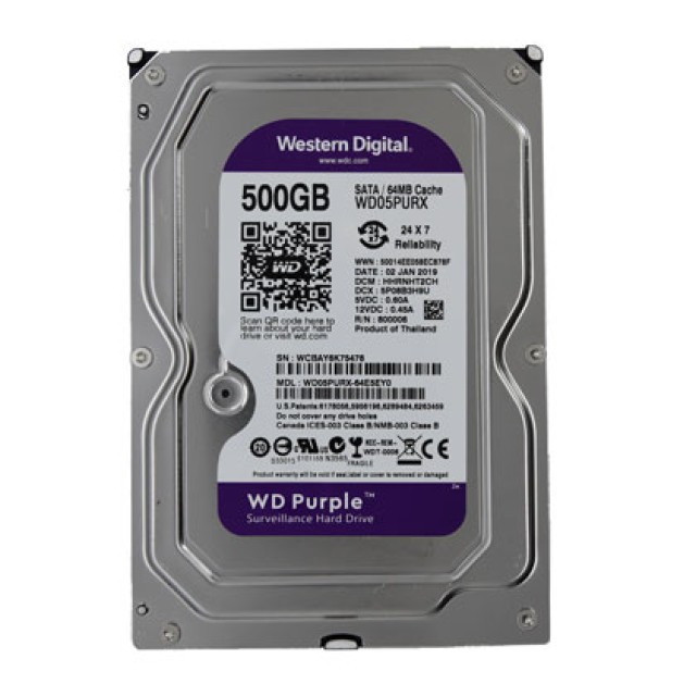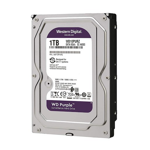- Ổ cứng chuyên dụng cho camera WD Purple đáp ứng nhu cầu lưu trữ ngày càng cao cho hệ thống camera theo dõi giám sát với các mức dung lượng từ 500GB, 1TB, 2TB, 3TB, 4TB, 6TB, 8TB đến 10TB