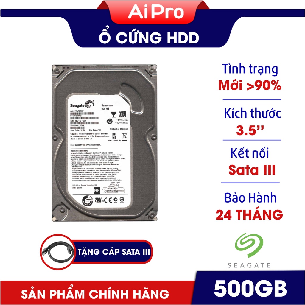 Ổ cứng HDD Seagate 500GB - Mới trên 90%) - Bảo hành 24 tháng 1 đổi 1Ổ cứng PC HDD Seagate 500GB (ổ cứng 3.5 inch)