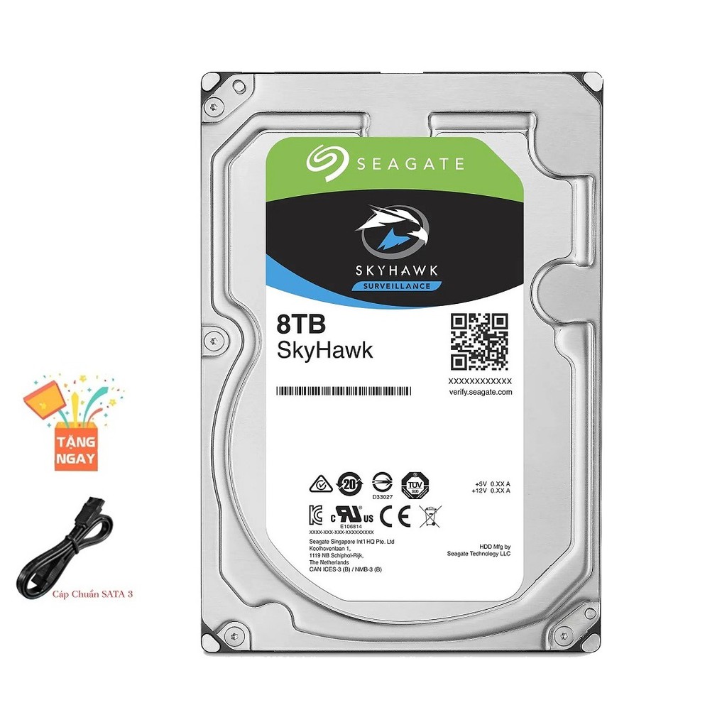 Ổ Cứng HDD 8TB Seagate SkyHawk Surveillance Dùng cho Camera, Karaoke, thiết bị lưu trữ chuyên dụng sử dụng 24/24...Tặng ngay cáp chuẩn SATA3 6.0Gbs chính hãng trị giá 50k (dùng cáp chuẩn quyết định 60% tốc độ của ổ)