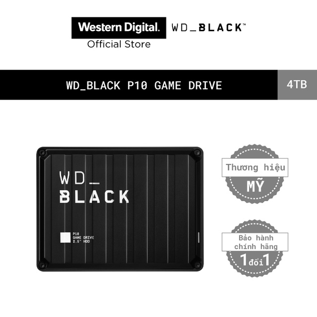 Máy tính & Laptop > Thiết Bị Lưu Trữ > Ổ Cứng Di Động || [Mã ELMALL1TR giảm 5% đơn 3TR] Ổ cứng HDD WD BLACK P10 Game Drive 4TB 2.5", 3.2 (WDBA3A0040BBK-WESN)Còn hàng