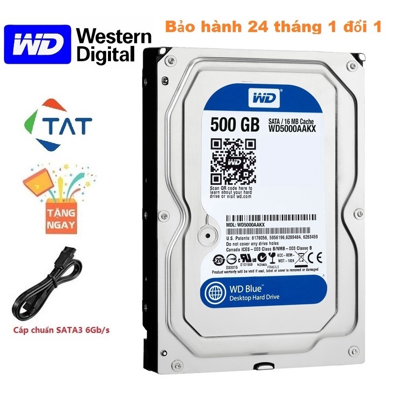 Ổ Cứng Western Blue 500GB chuyên dùng lưu trữ cho các thiết bị chuyên dụng Máy tính, Camera, Karaoke, Đầu xem phim, Nhạc, Video, DATA Center... cho tất cả mọi dữ liệu bạn cần lưu và cất dữTặng ngay cáp kết nối chuẩn SATA3 6Gbs chính hãng trị giá 50k (dùng cáp chuẩn quyết định 60% tốc độ của ổ)