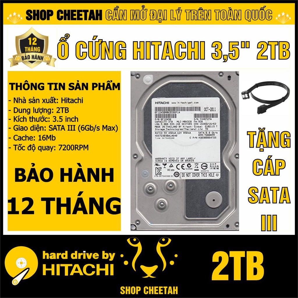 Ổ cứng Hitachi 2TB – Ổ cứng HDD 3,5” cho PC – Chính Hãng – Bảo hành 12 tháng – Tháo máy đồng bộ mới 99% - Chuyên dùng cho cameraTHÔNG TIN SẢN PHẨM:
